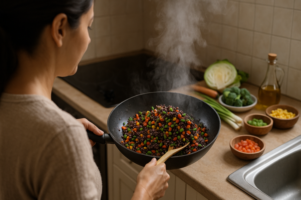 This chao fan quickly became a family favorite once I started making it with more nutritious ingredients. The protein-rich edamame and antioxidant-packed black rice create a meal that’s not only satisfying but also nourishing — so much so that everyone keeps asking for it. And whenever we have leftover rice, this recipe is our go-to way to turn it into something delicious.