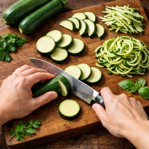 Raw applications rely on thin, elegant cuts like ribbons and julienne strips. These preserve zucchini’s crispness and light flavor.