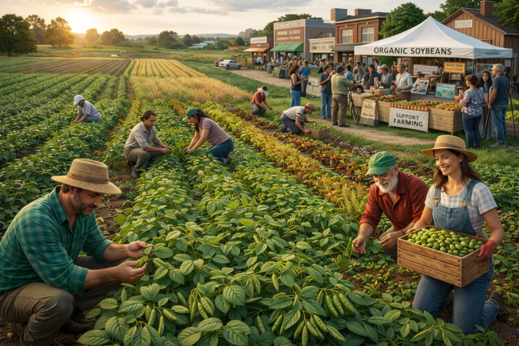 Sustainable farming practices are critical in reducing the environmental footprint of agriculture. Organic soybean farmers use crop rotation and community engagement to grow sustainably with the ecosystem.